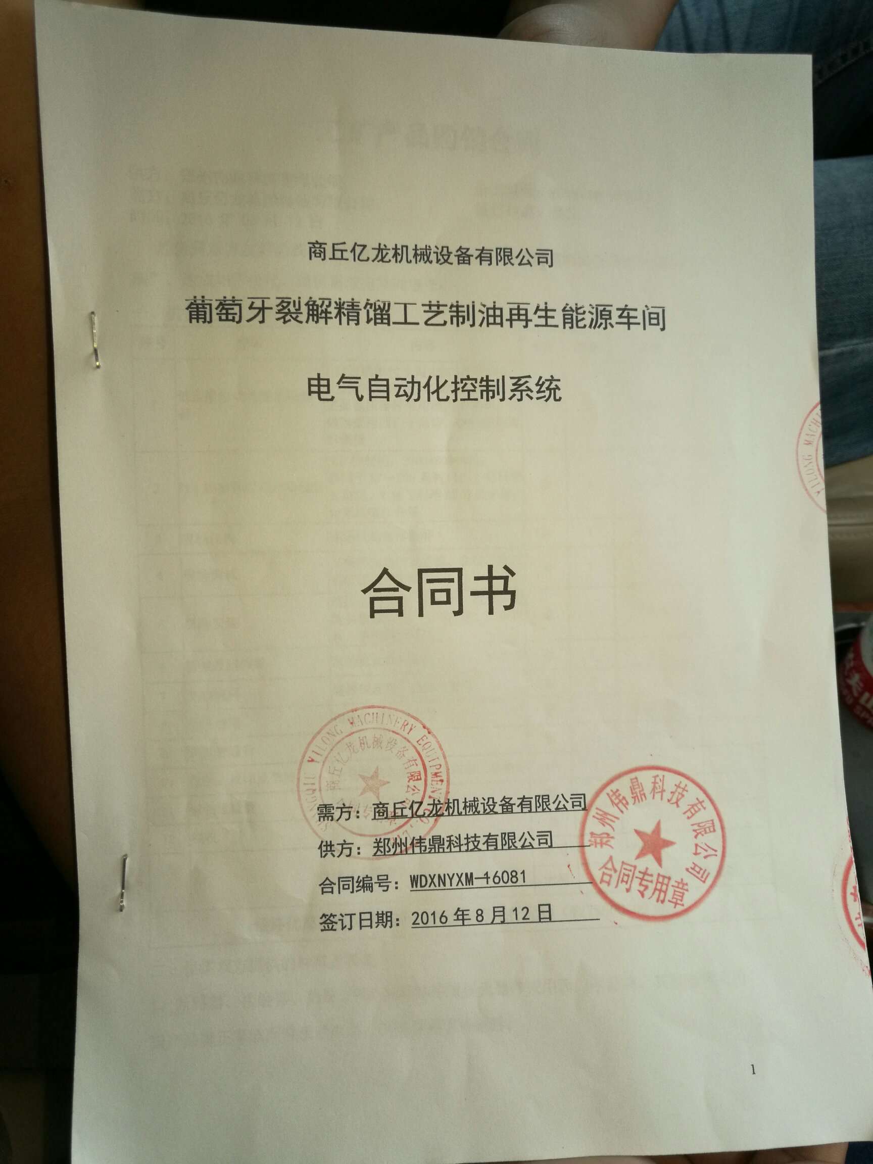 2016年8月12日,我公司與商丘億龍機(jī)械設(shè)備有限公司就葡萄牙一套“廢舊輪胎塑料裂解精餾制油生產(chǎn)線電氣自動(dòng)化控制系統(tǒng)”順利達(dá)成合作協(xié)議。
